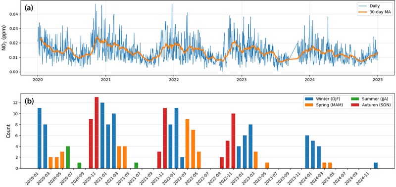 This study investigated the transport characteristics and potential source regions of nitrogen dioxide (NO) in Yeosu, a coastal industrial city in South Korea, ...